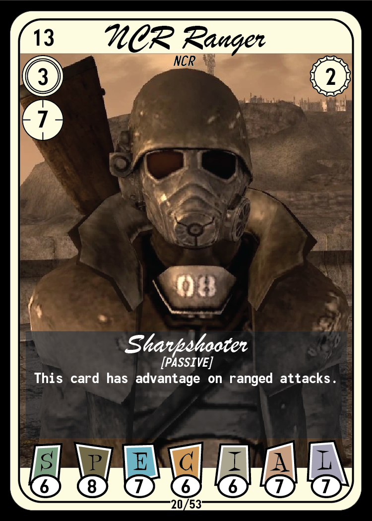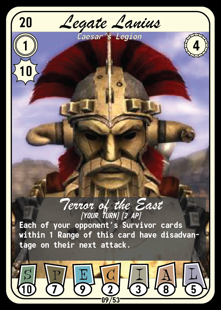 Across the wasteland, countless factions vie for power! Build a deck centered around your favorite faction and create a powerful unified force to crush your opponent, or mix and match a ragtag group of survivors to create interesting and unique combinations to catch your opponent off guard!